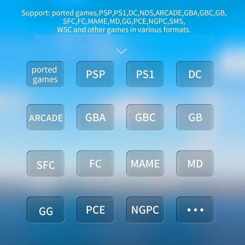 Retroarch, simulira sljedeće retro sustave: PS1 -PlayStation 1, CPS, NEOGEO, NEOGEO POCKET, GBA – Game Boy Advance, GBC – Game Boy Color, MAME, Sega Master System, Sega Mega Drive 2, Nintendo NES, SNES – Super Nintendo, ATARI, PSP, Nintendo DS, Sega Dreamcast i druge.