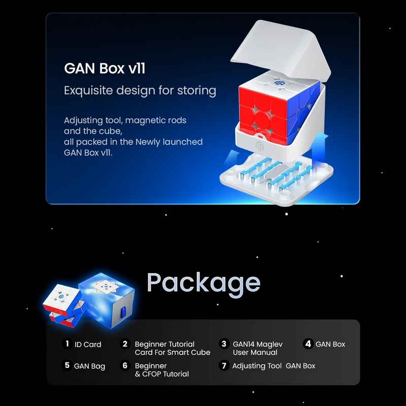 Sadržaj pakiranja: kocka, plastična kutija i vrećica za čuvanje, alati za namještanje magneta, upute, specifikacija, GAN kartica.