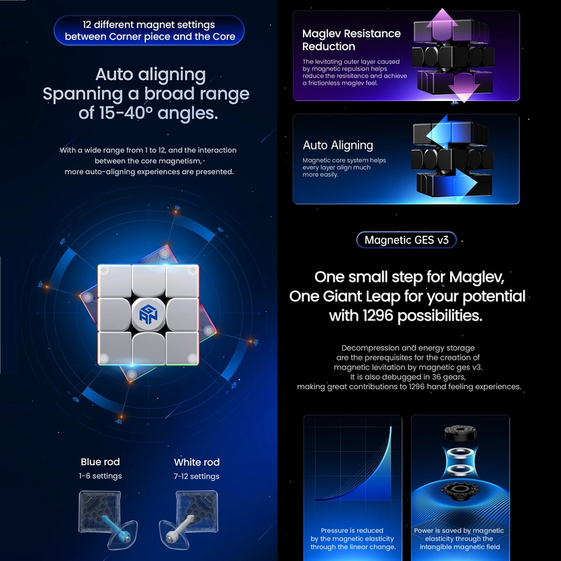 Prepoznatljivi GAN unutarnji dizajn sa gravurama, poput pčelinjih saća. Vanjski “frosted” dizajn koji ne ostavlja otiske i tragove na kocki. Veoma složena i moćna magnetna kocka.