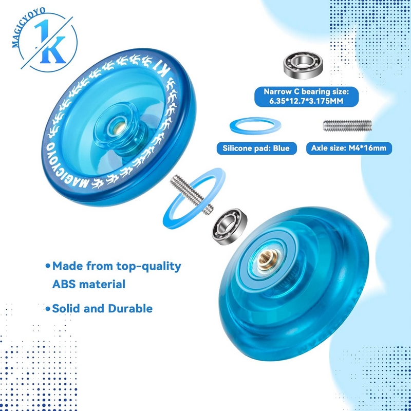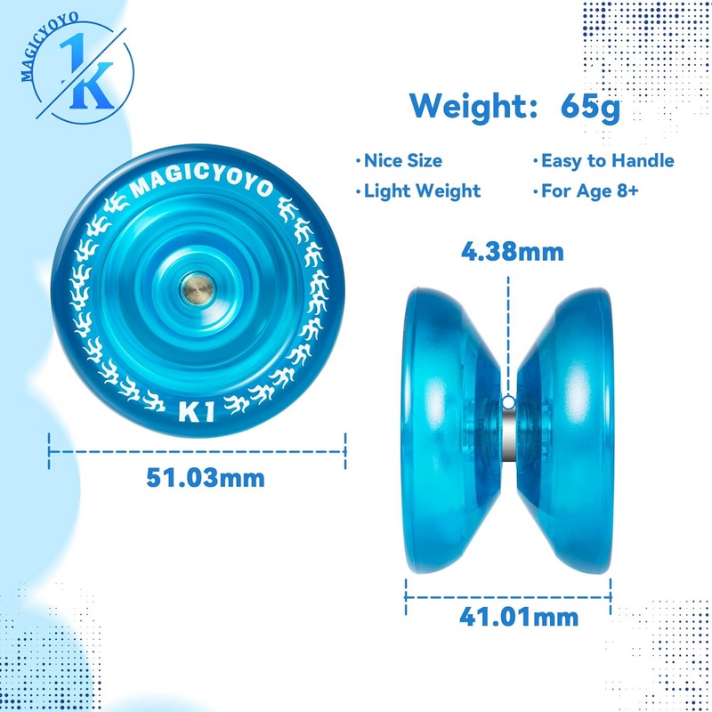 Odličan za djecu i odrasle, lagan, a u isto vrijeme čvrst i izdržljv. Unutrašnji ravni konkavni prsten, služi za lagano okretanje i ugodan osjećaj u ruci. Dolazi sa posebnim držačima za izvođenje trikova, a u paketu još dođe: 5 konopaca, rukavica i vrećica za čuvati i spremiti jojo.