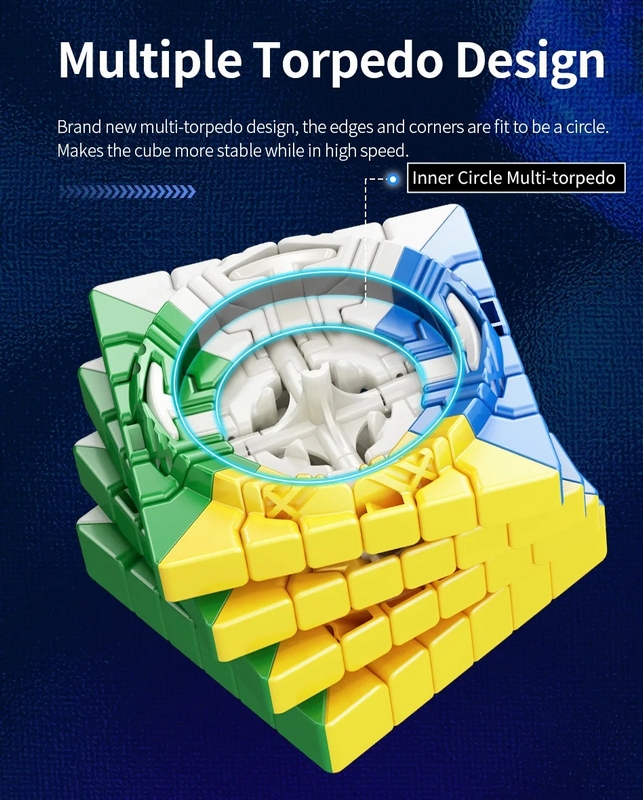 Unaprijeđena verzija V2, kreirana sa širinama stranica 6.1 cm i torpedo dizajnom, za savršenu kontrolu u ruci i bolju brzinu prilikom okretanja. Sa 144 integrirana magneta, savršeno se okreće i neusporedivo je bolja i brža u odnosu na klasičnu kocku.