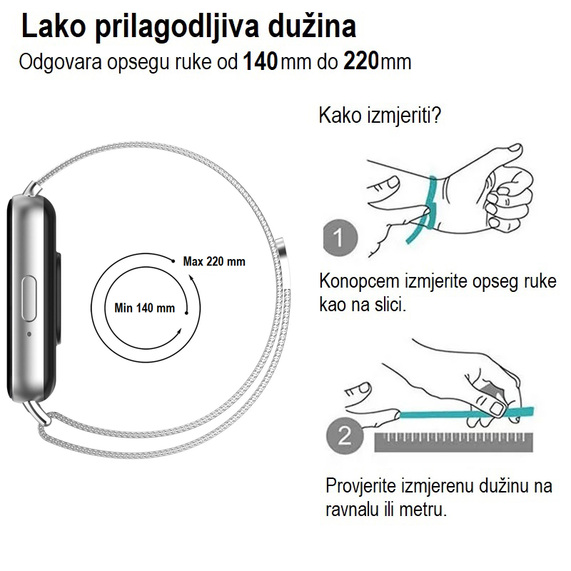 Dužina: prilagodljiva ruci (opseg 140 mm do 220 mm)