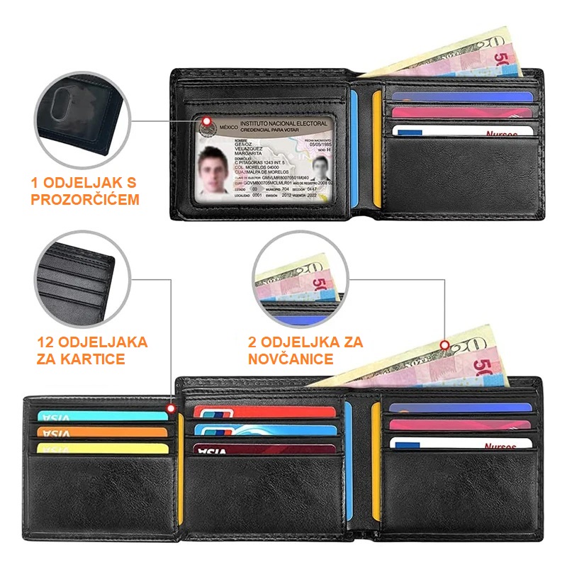 • 12 pretinaca za kartice i 1 pretinac s prozorčićem za osobne dokumente